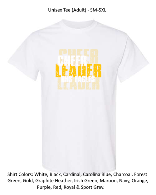 Please allow 2 WEEKS production time for CUSTOM garments (garments with School names or garment colors other than white or black) and 1 WEEK or less production time for NON-CUSTOM garments (garment colors of white and black with no school name).