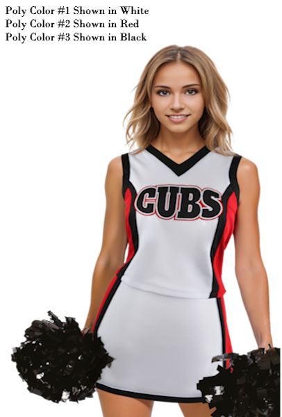 Order the custom vest or add the pictured skirt to receive special kit pricing for the full uniform.  Vests can be made with a solid or stretch back at no additional charge.  Uniforms will be made with the same color patterns as shown on the chosen uniform selection.  For example, all locations shown in Purple will change to the new selected color.  For sizing, please refer to the sizing charts shown below.  Additional information can be found on our Custom Uniform Information page, the link to which can be found in the quick links at the bottom of the page.